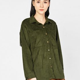Áo sơmi nữ denim có túi ốp ngực